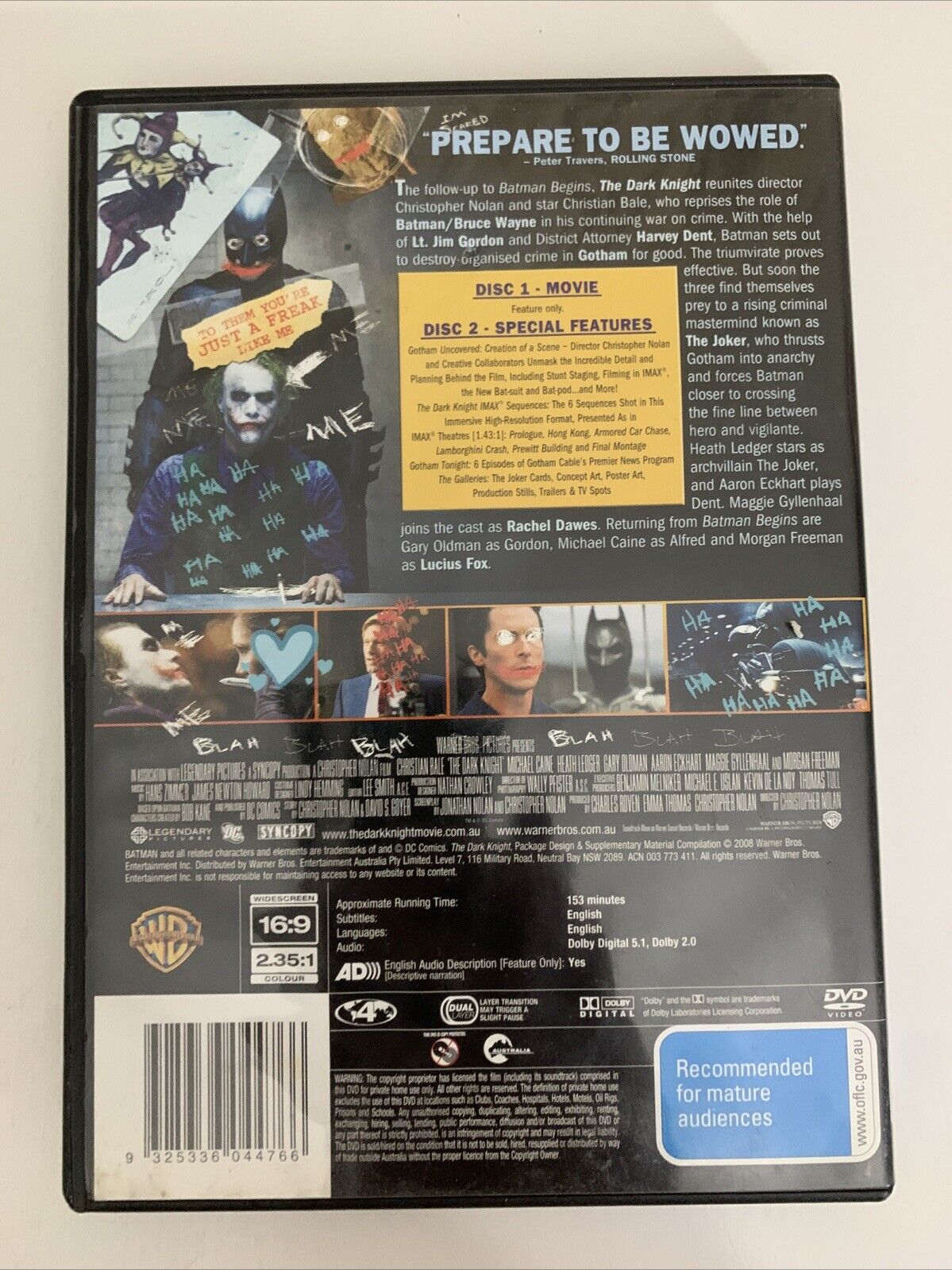 The Dark Knight (Special Edition DVD, 2008) Christian Bale, Heath Ledger Region4