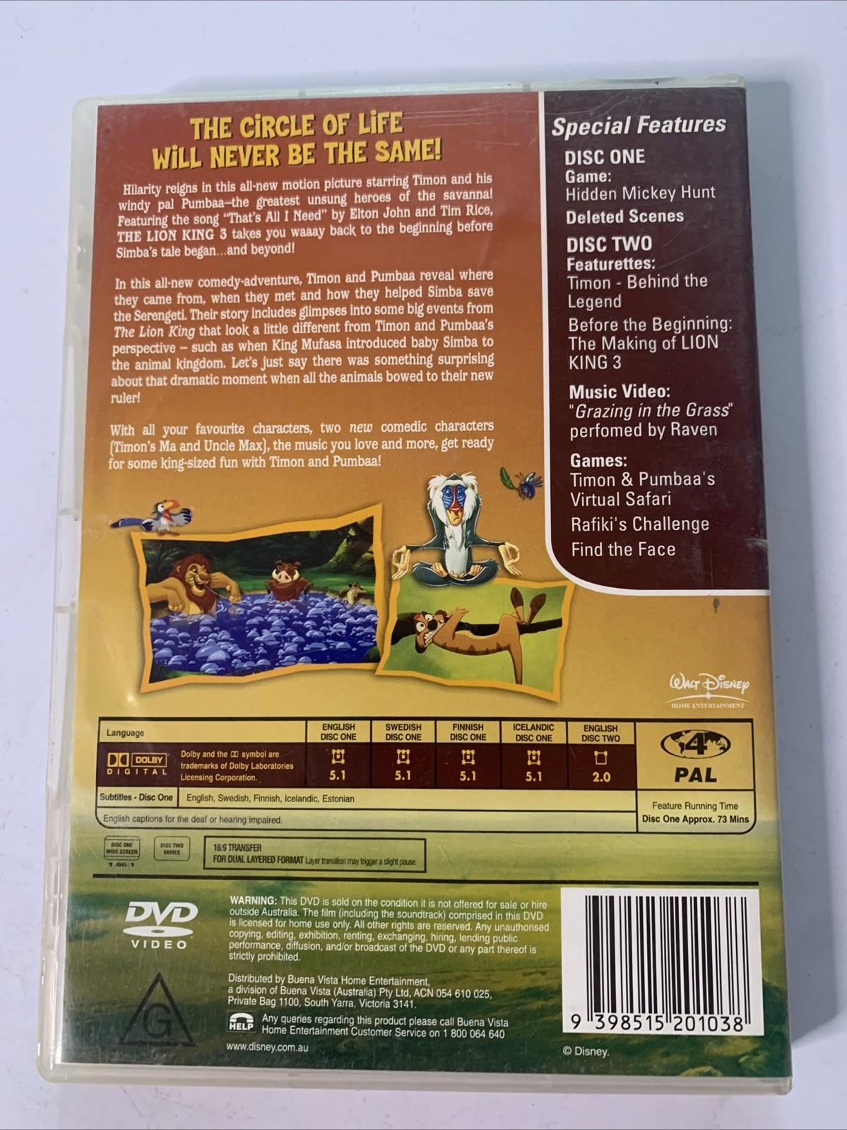 The Lion King 3: Hakuna Matata (DVD, 2004, 2-Disc) Disney Animated Film Region 4