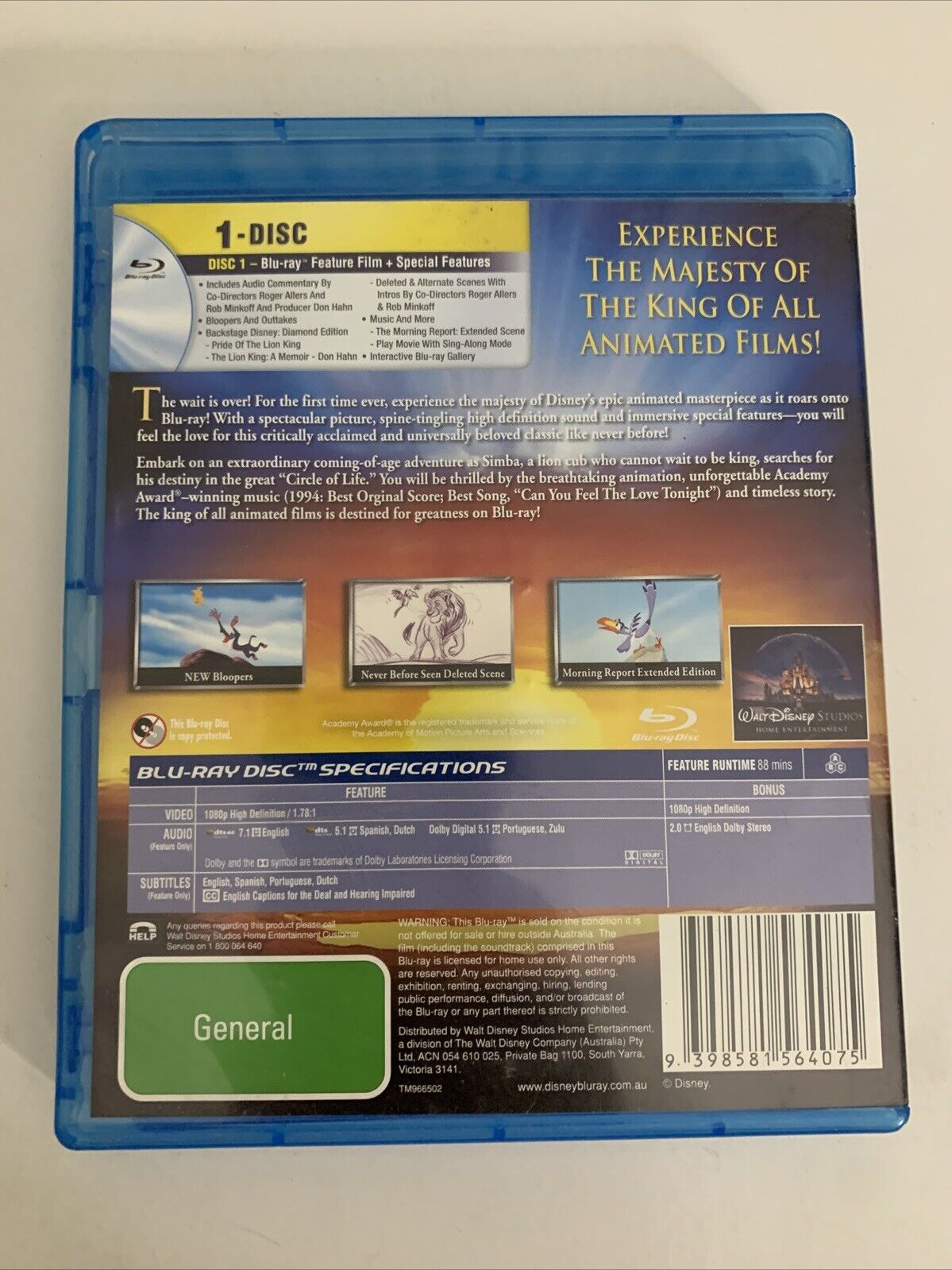 The Lion King (Blu-ray, 1994) Diamond Edition Disney Animated Film All Regions