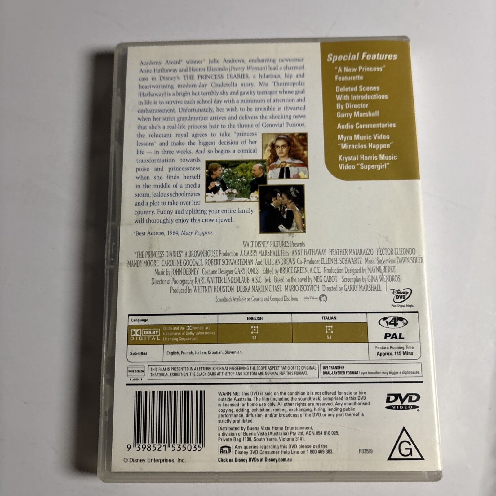 The Princess Diaries (DVD, 2001) Julie Andrews, Anne Hathaway Region 4