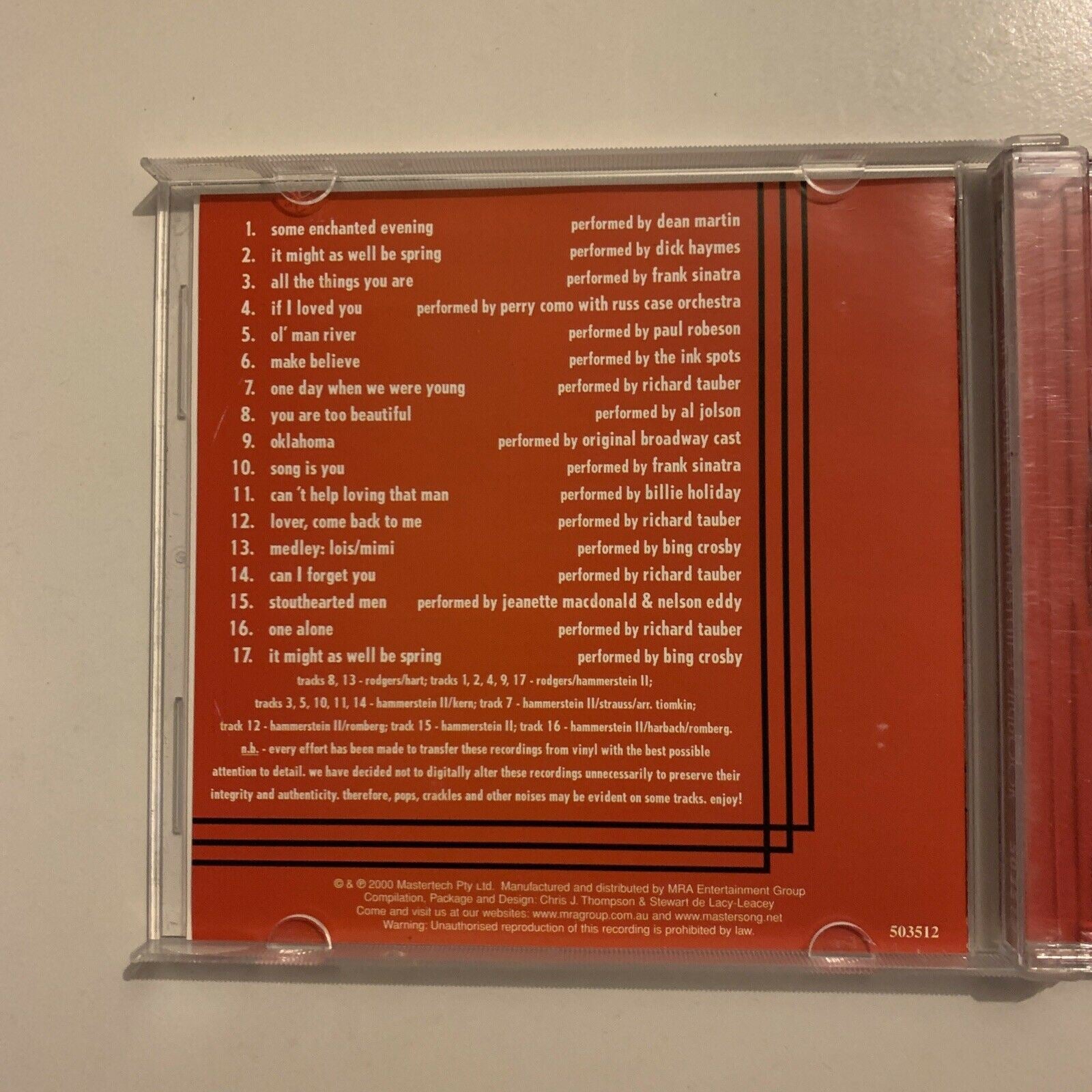 The Rodgers & Hammerstein Songbook - 17 Sentimental Standards (CD, 2000). Condition is "Good". Sent with Australia Post Standard Parcel.