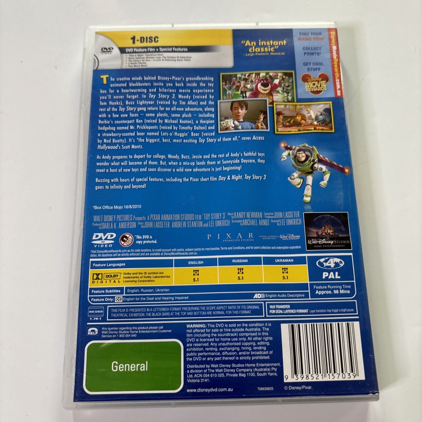 Toy Story 3 (DVD, 2010) Tim Allen, Tom Hanks Region 4