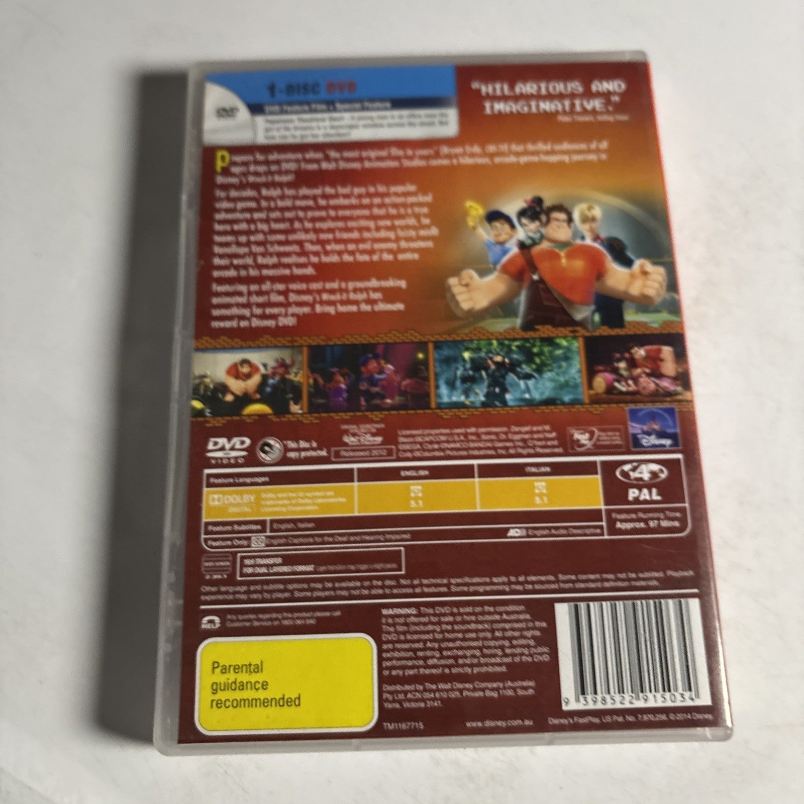 Wreck-It Ralph (DVD, 2012) Disney Region 4